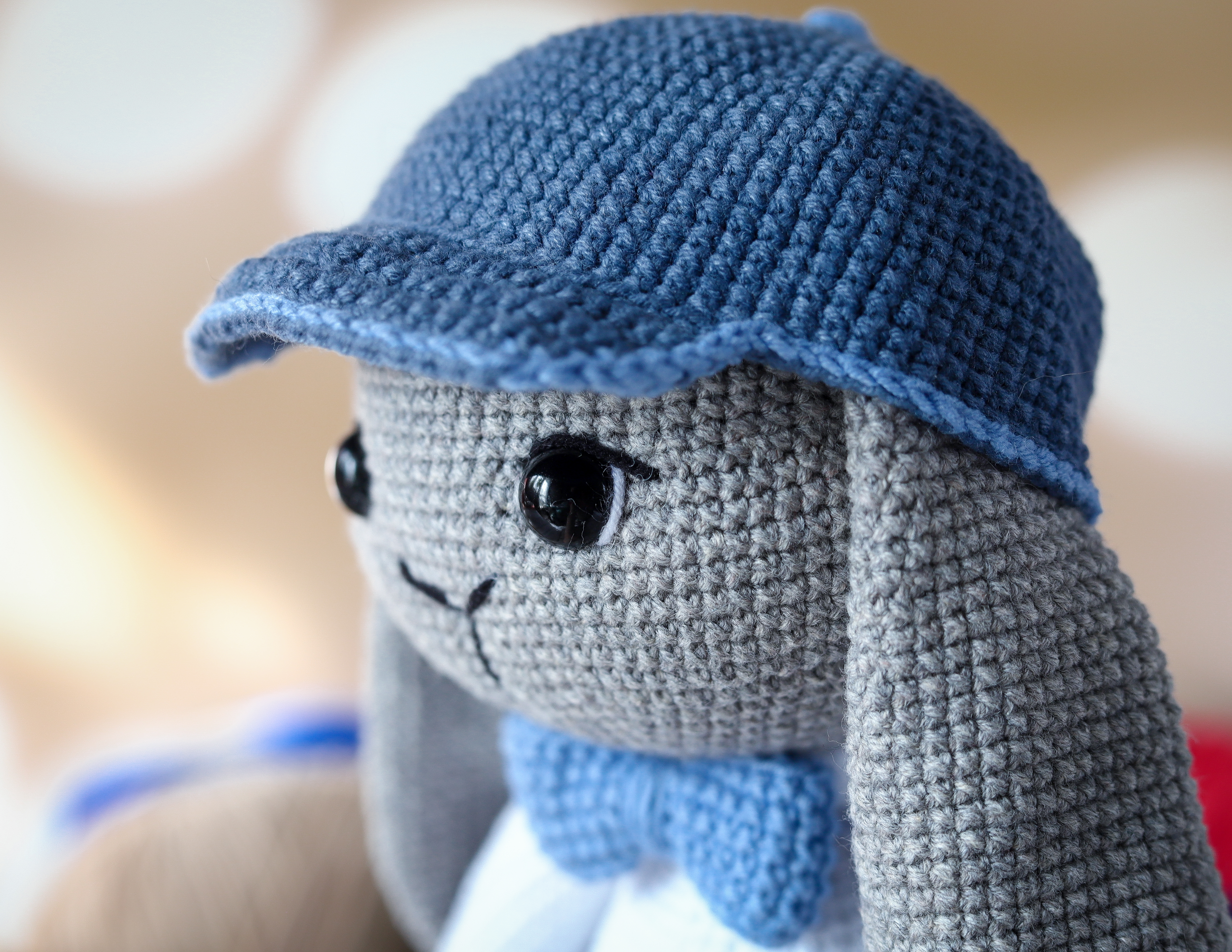 Tymek zrobiony z włóczki Kotek mierzył 29 cm na stojąco, a ten z Yarn Art Jeans ma 21 cm wysokości. Wzór jest autorstwa TinyMiniDesign.